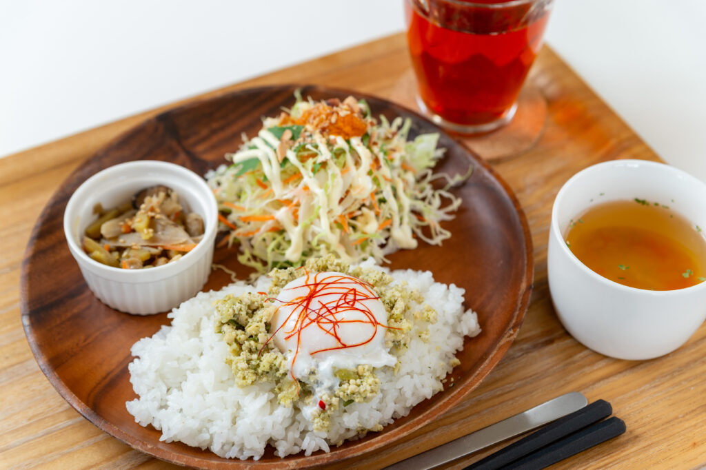 ランチ・おこわドリア・キーマカレー・焼き菓子・スイーツなど、心にもからだにもやさしいメニューをご用意しています。