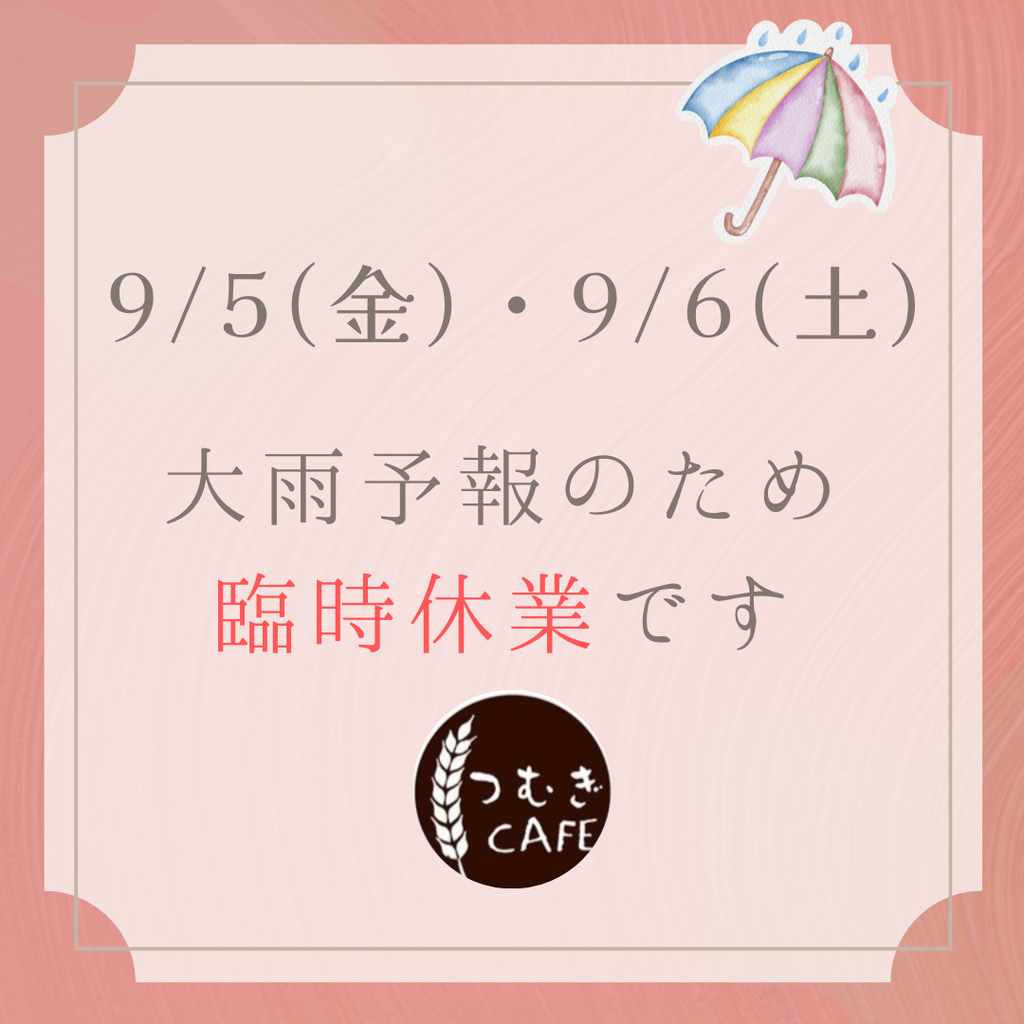 9/5-9/6(金・土)は大雨予報のため、臨時休業です。