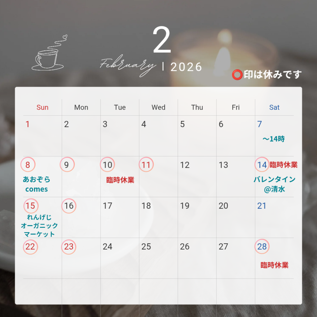 おはようございます。 寒い毎日に、つむぎCAFEのあたたかいお料理で暖まっていってくださいね。 2月はイベントに臨時休業などもあります、お出かけ前にご確認ください、またお知らせしますね。 -
