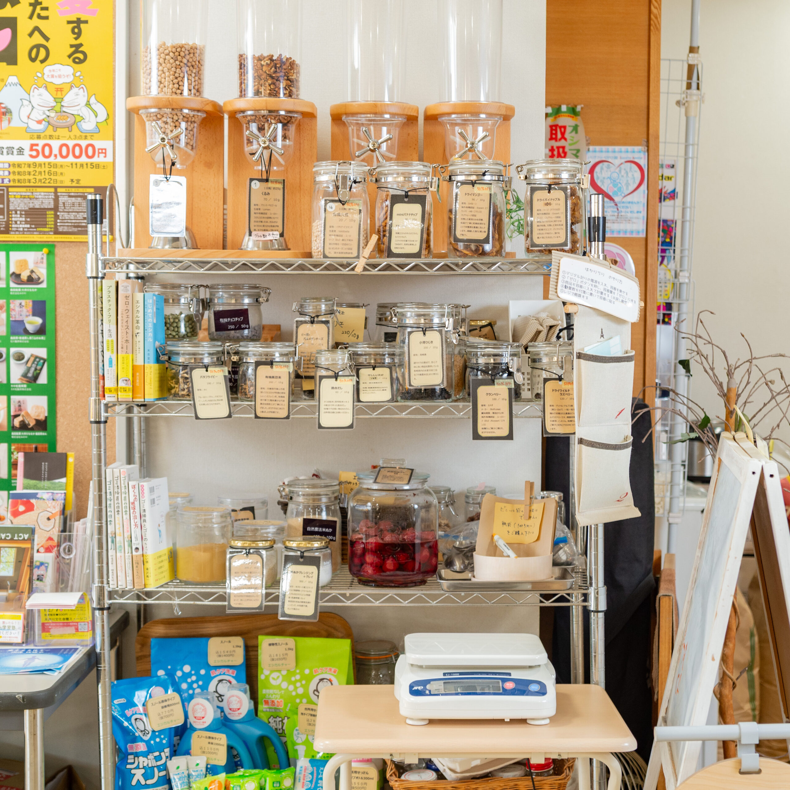 つむぎCAFEで使っている、オーガニック等のこだわり食材をはかり売りしています。