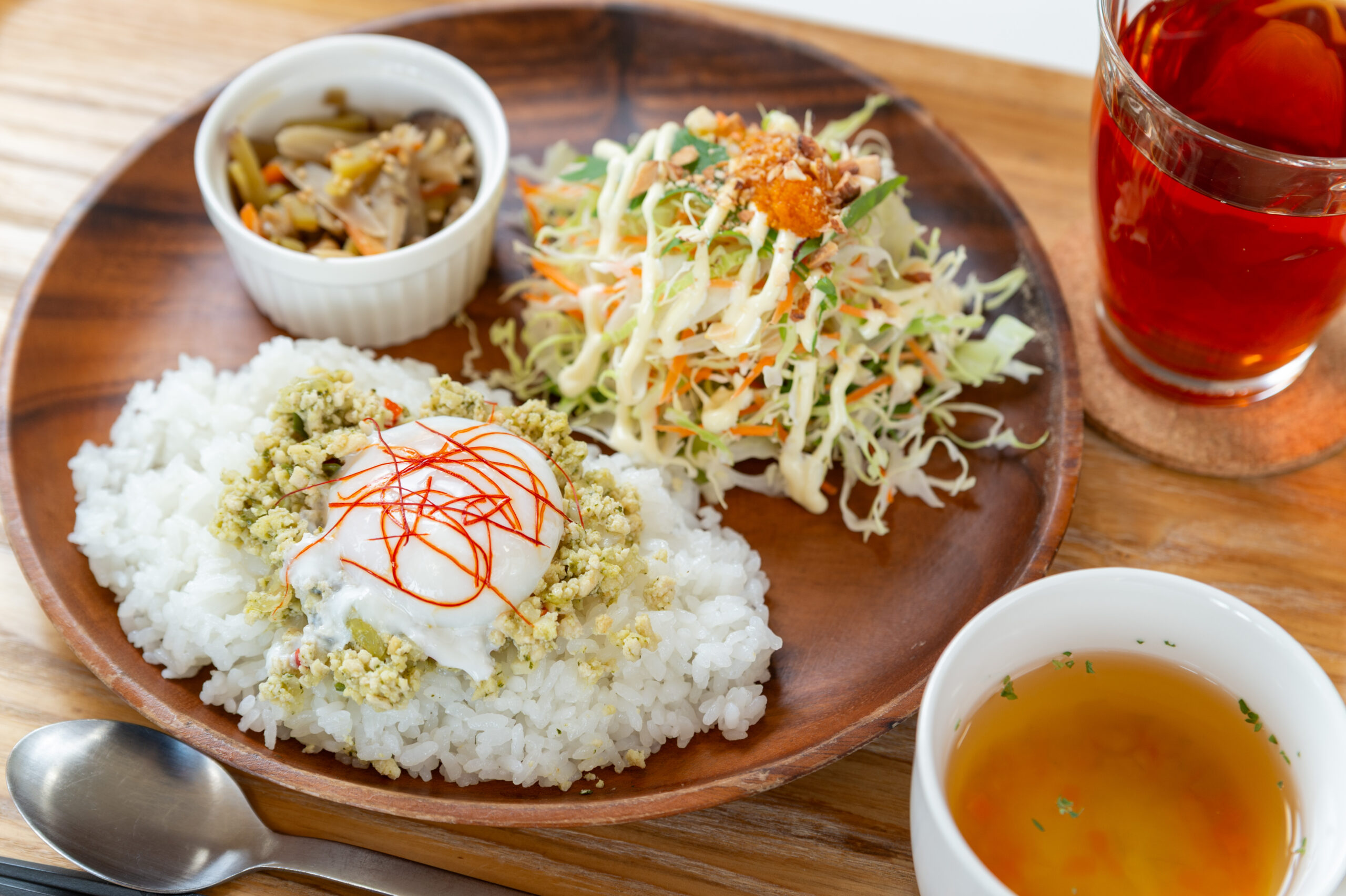 ガパオライスランチ 2025 12/09 ナンプラーとバジルソースをふんだんに使った、つむぎCAFEオリジナル「ガパオライス」 味はHOT(辛)とNORMALが選べます ランチメニュー よかったらシェアしてね! URLをコピーしました! URLをコピーしました! プラネタリーヘルスランチ そぼろ温玉プレートランチ この記事を書いた人 web.tsumugi 関連記事 平飼い卵:こめたまふぁーむ 取り扱いしています 2026年1月10日 日替わりデザート 2025年12月30日 お味噌汁 2025年12月30日 パニーニ 2025年12月30日 焼き菓子各種 2025年12月30日 おむすび 2025年12月30日 アップサイクルアクセサリー(chess) 2025年12月8日 シャボン玉せっけん商品 2025年12月8日